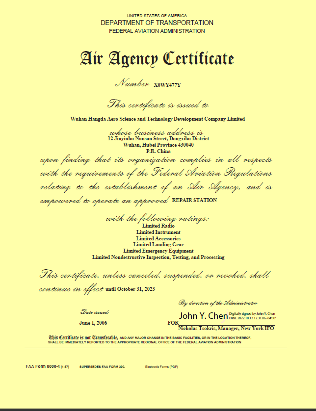 我們擁有CAAC、FAA、EASA以及多國和地區(qū)的維修資格證書